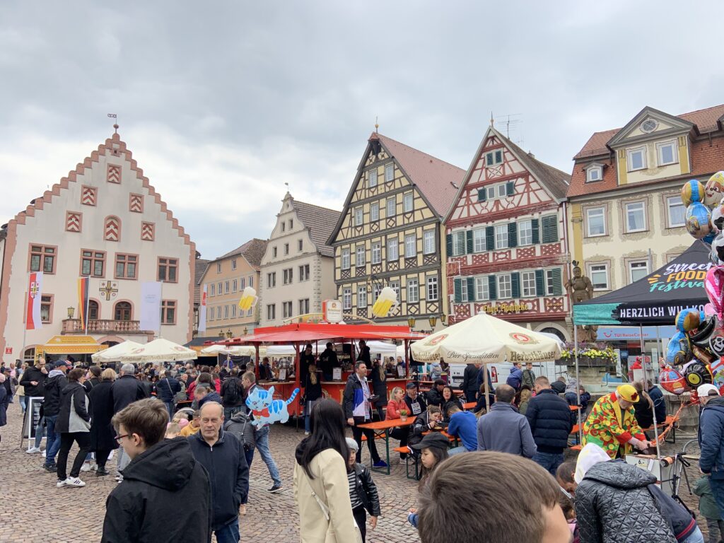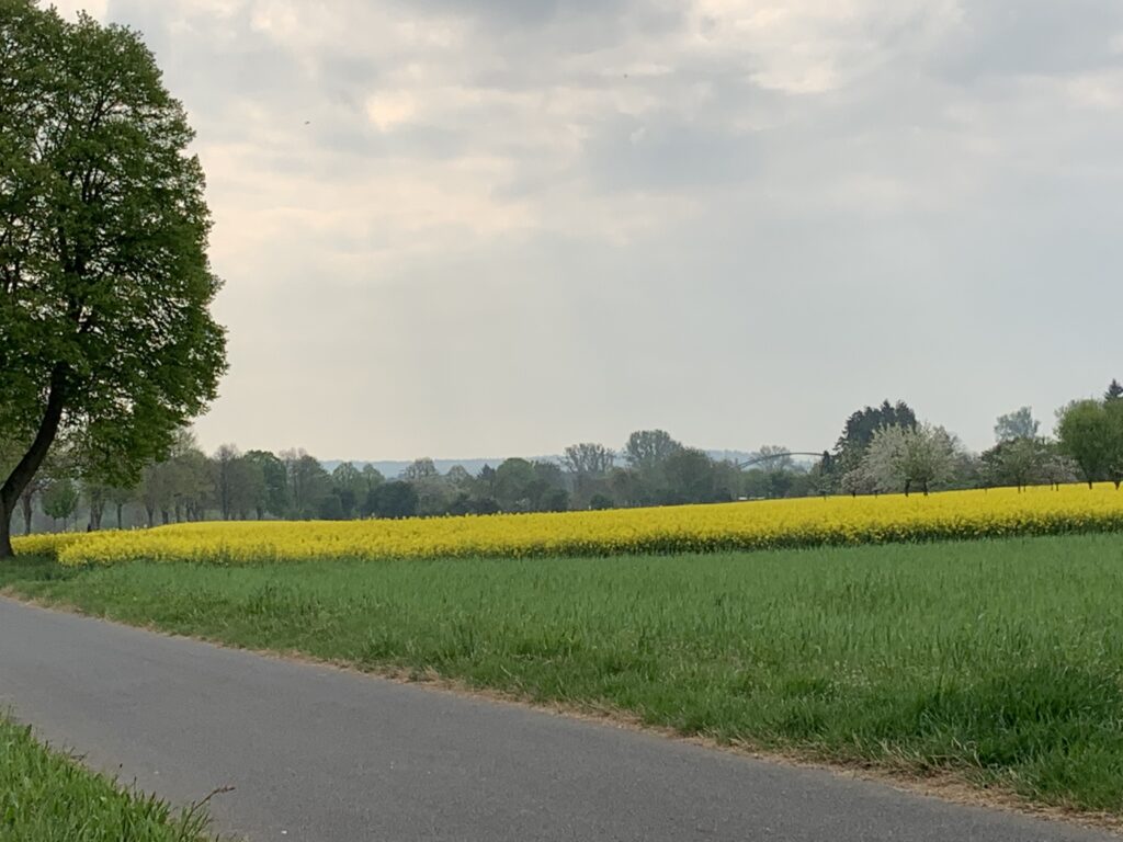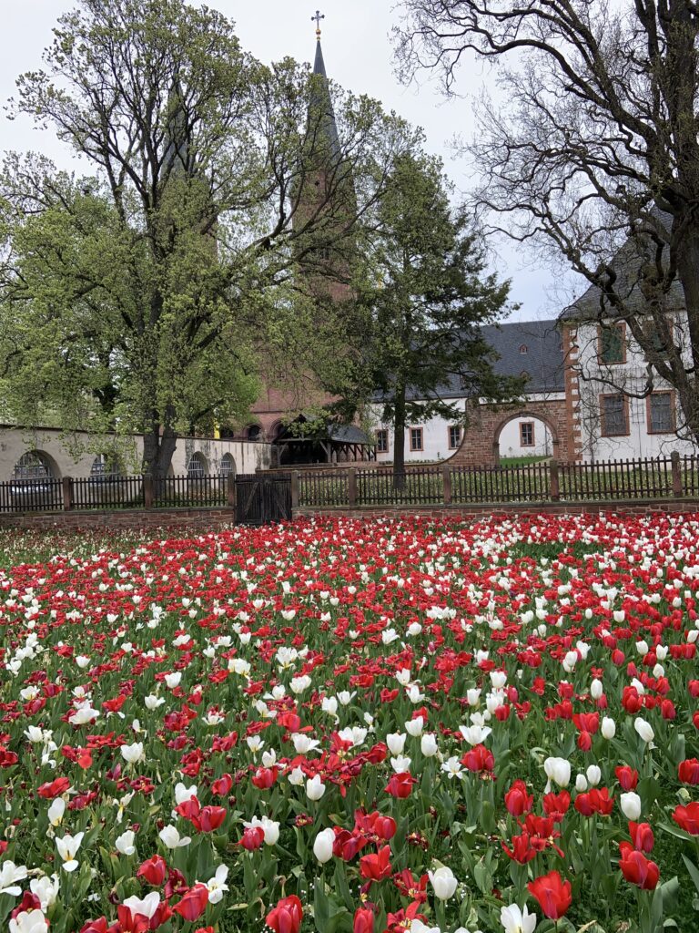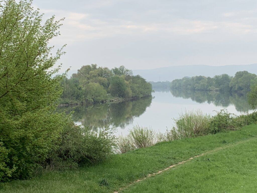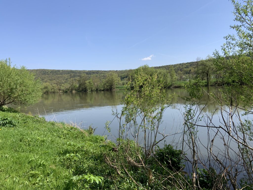 In Bad Mergentheim müde am Morgen los. An der Tauber bei strahlendem Sonnenschein vorbei an wunderschön blühenden Apfelbäumen.